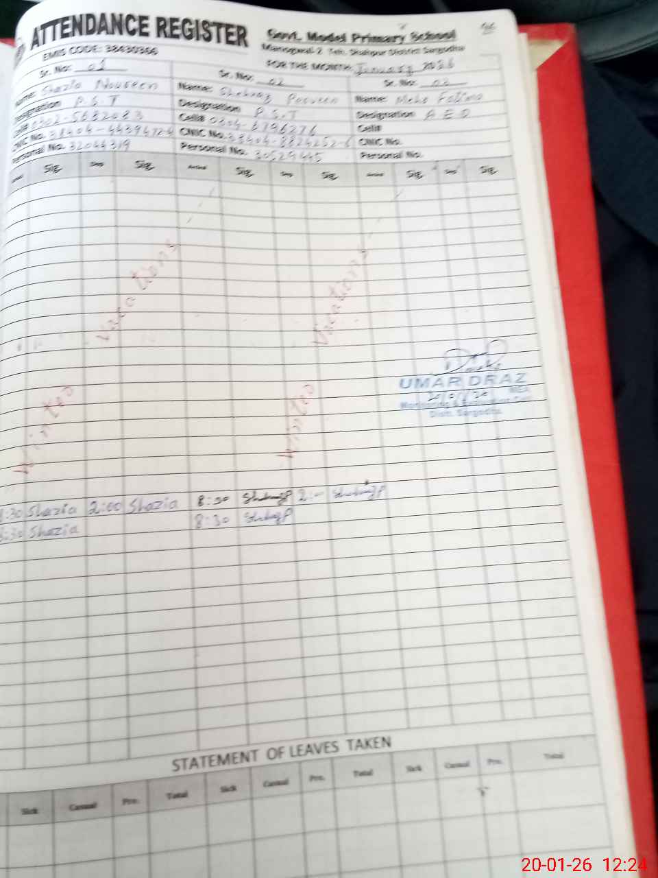 | Name: SH**** NO**** Designation: (School Headmaster's/Headmistress's) PST Phone/Cell Number: 03**** |