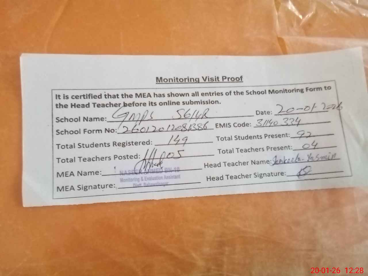 | EMIS Code: 31140334 | Name of School: GMPS CHAK NO. 56/4-R | |||