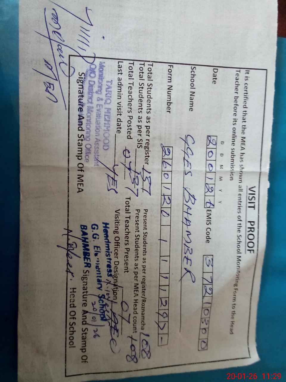 | EMIS Code: 37210300 | Name of School: GGES BHAMBER | |||