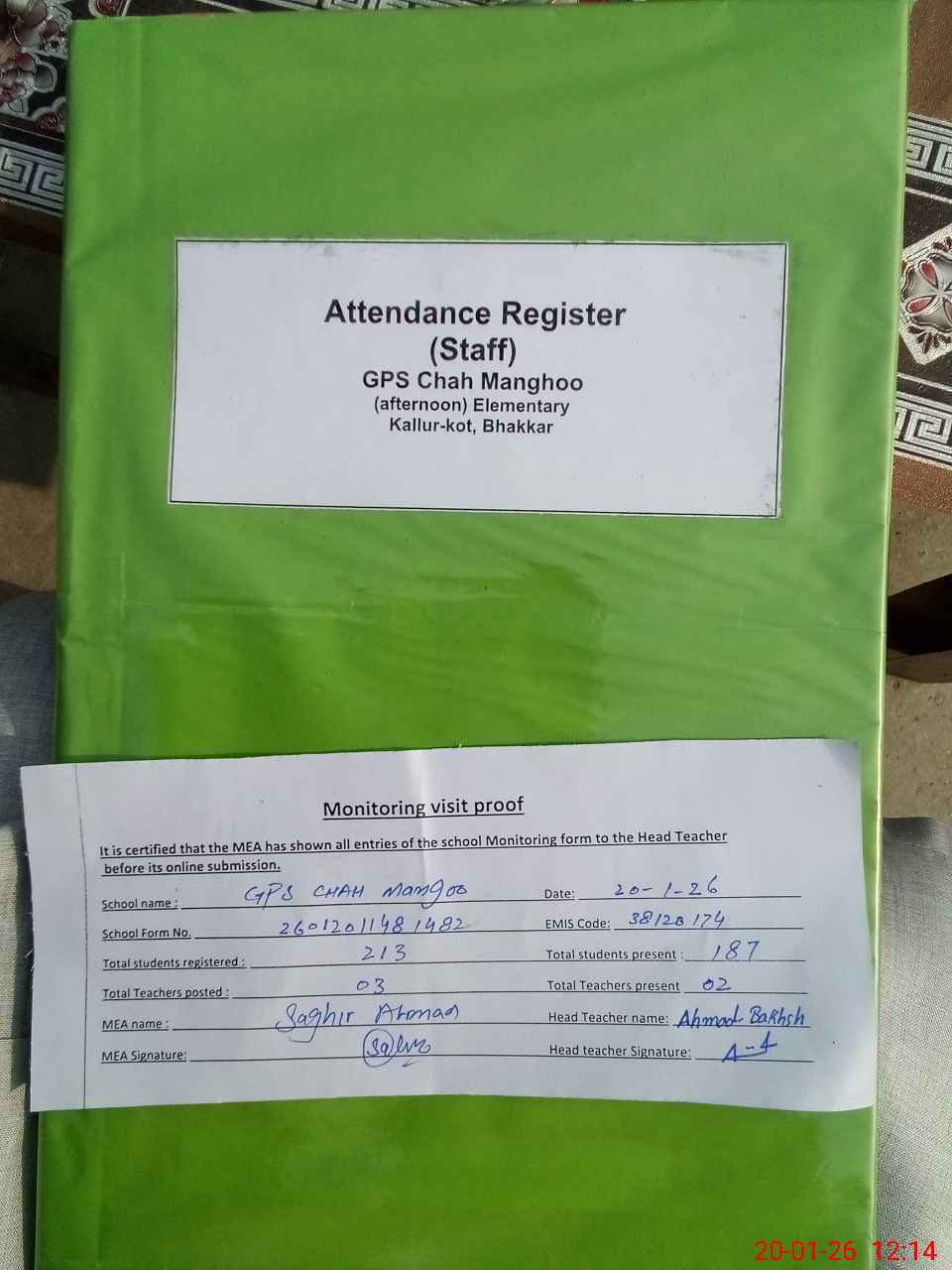 | EMIS Code: 38120174 | Name of School: GPS CHAH MANGHOO | |||