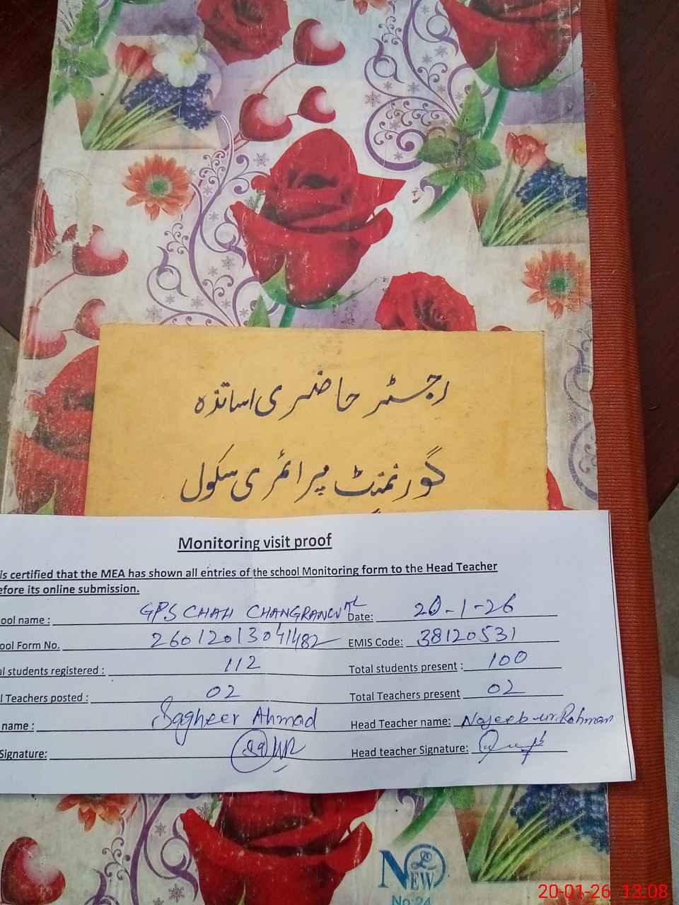 | Attendance Register | Head Teacher | MEA with School | Visit Proof |