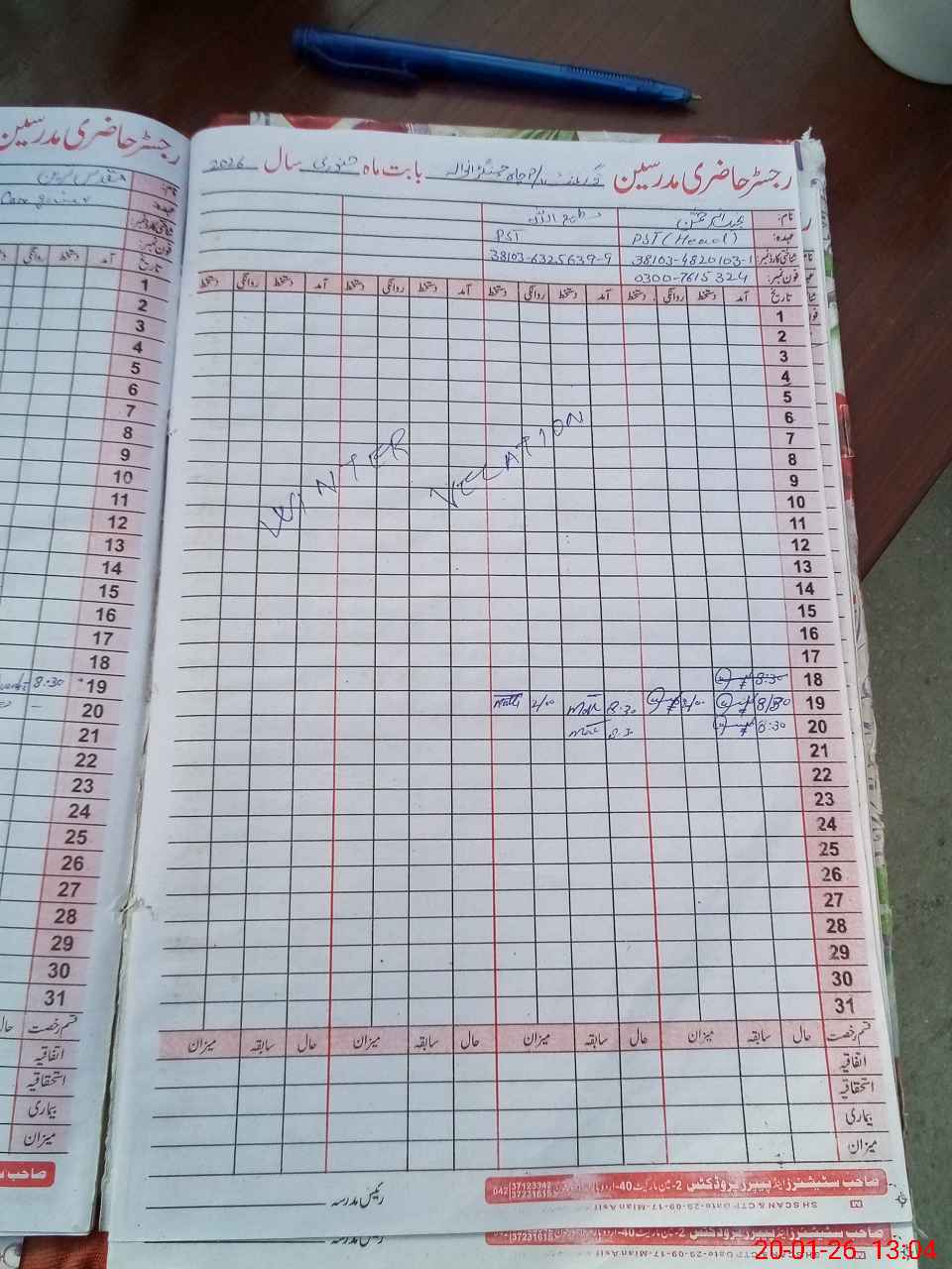 | Name: MU**** IR**** Designation: (School Headmaster's/Headmistress's) ESE Phone/Cell Number: 03**** |