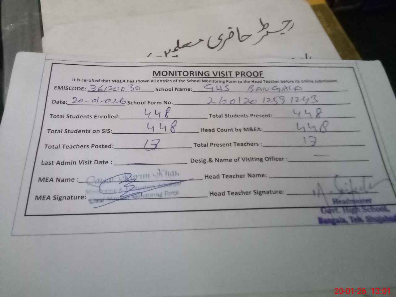 | EMIS Code: 36120030 | Name of School: GHS BANGALA P.O GARDEZPUR TEH.SHUJABAD | |||