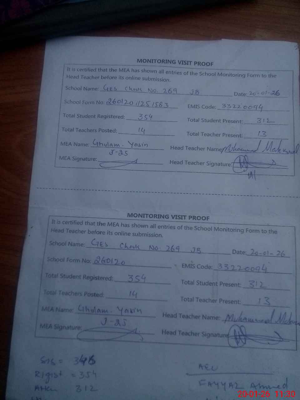 | EMIS Code: 33220094 | Name of School: GES CHAK NO 269 JB EAST | |||