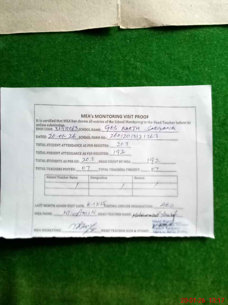 | EMIS Code: 36410063 | Name of School: GES BARJH SARGANA, SARAI SIDHU | |||