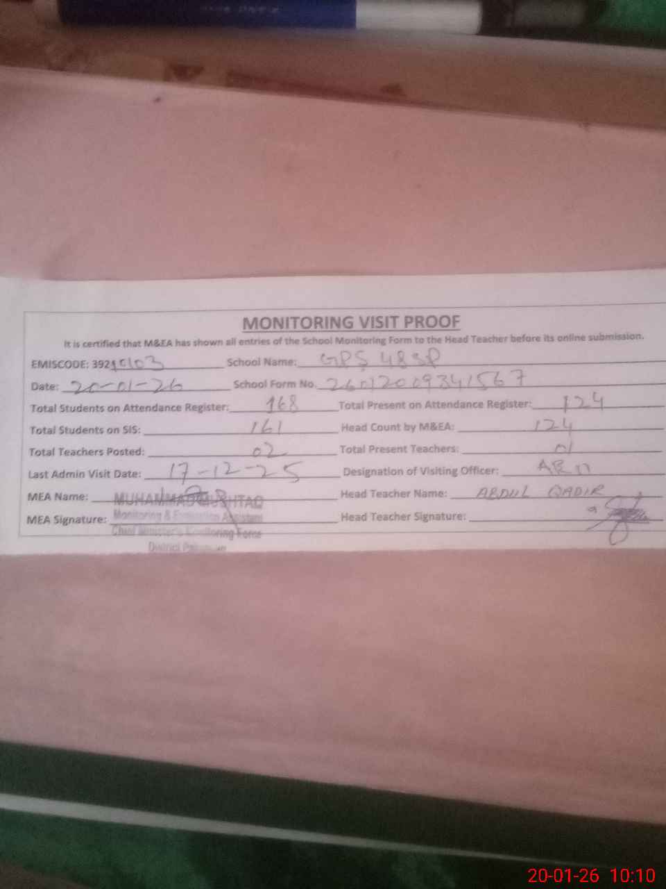 | EMIS Code: 39210103 | Name of School: GPS 48/SP P.O 8/S.P PAKPATTAN | |||