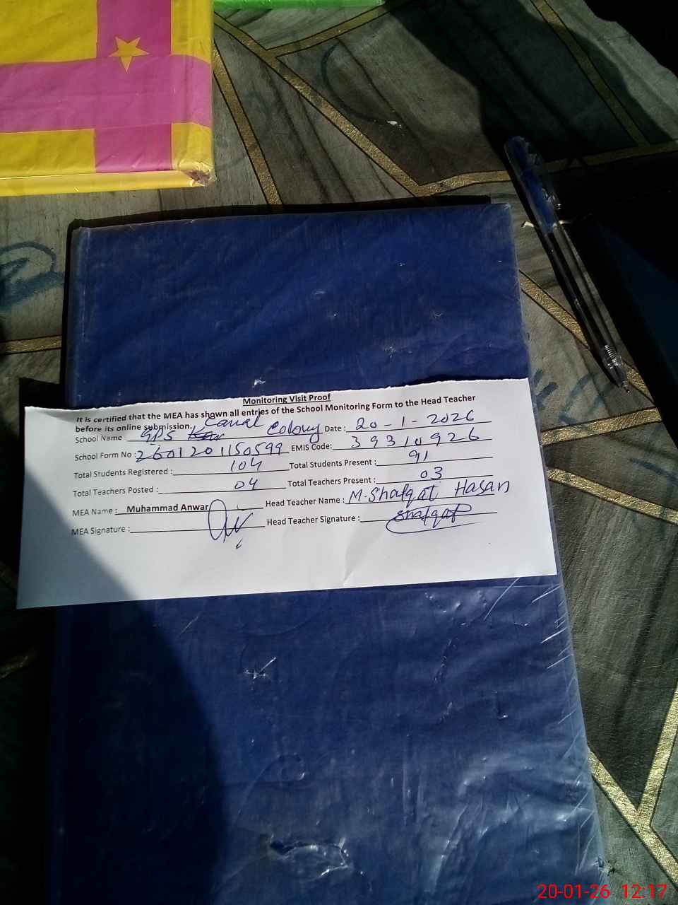 | EMIS Code: 39310926 | Name of School: GPS CANAL COLONY | |||