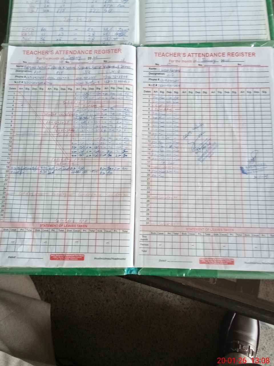 | Remarks (Use Separate Page if Required): No teacher is absent | |||||