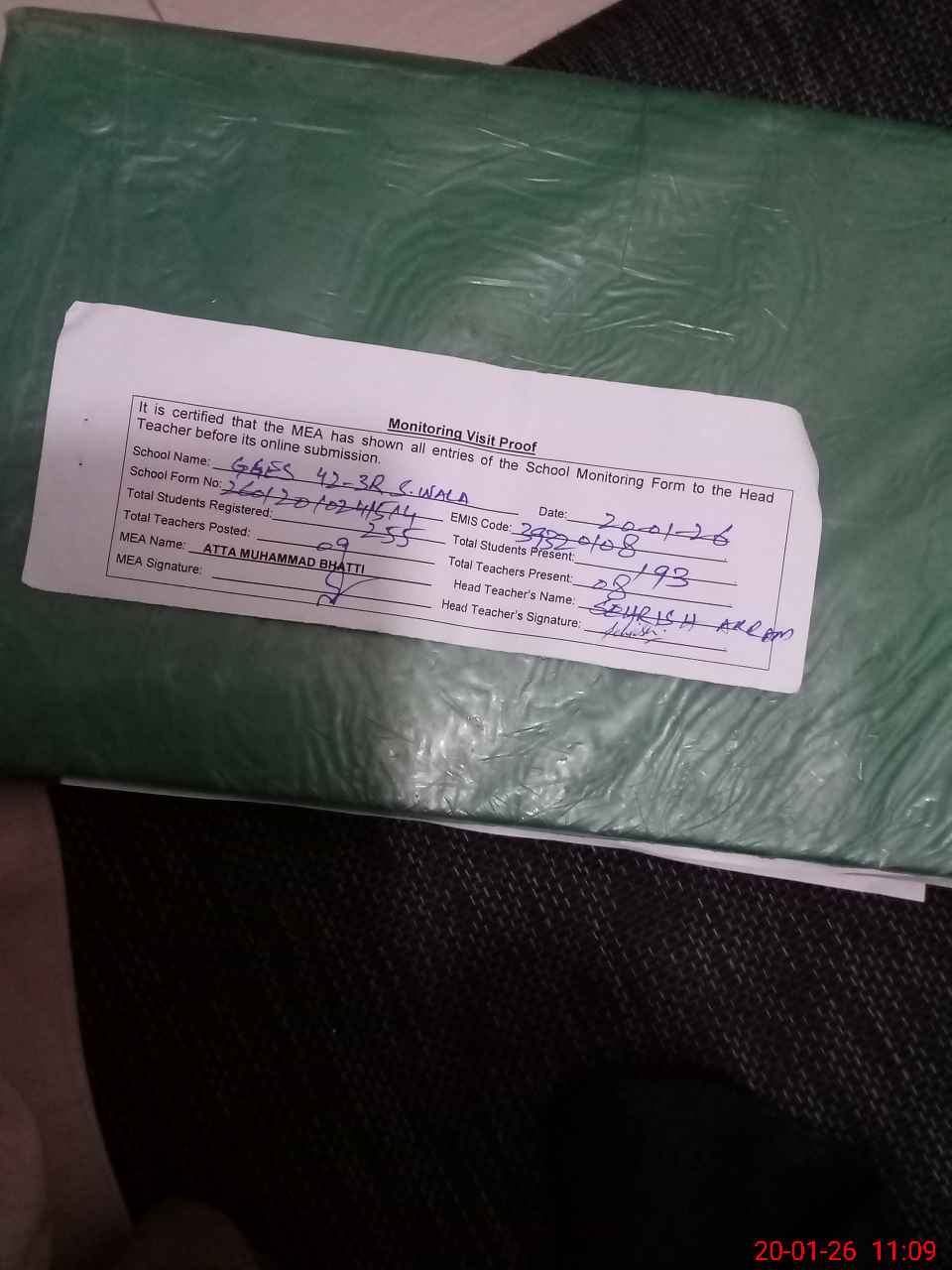 | Attendance Register | Head Teacher | MEA with School | Visit Proof |