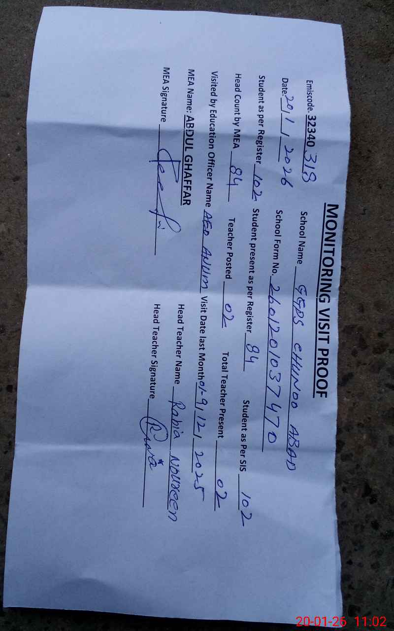 | EMIS Code: 32340318 | Name of School: GGPS CHUNOO ABAD | |||