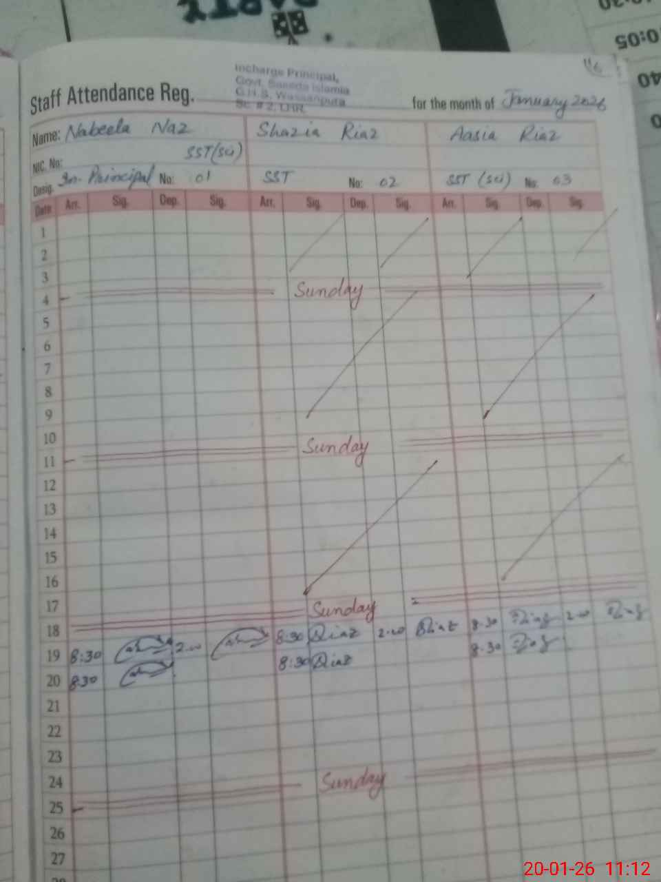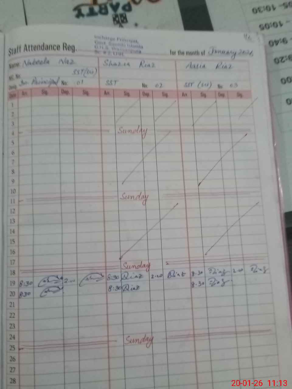 | 35**** | Im**** Kh**** | NQ | 0 | 0 | 31 | 0 | 0 | 0 | 0 | 0 | 0 | Absent (Un-Authorized) | |