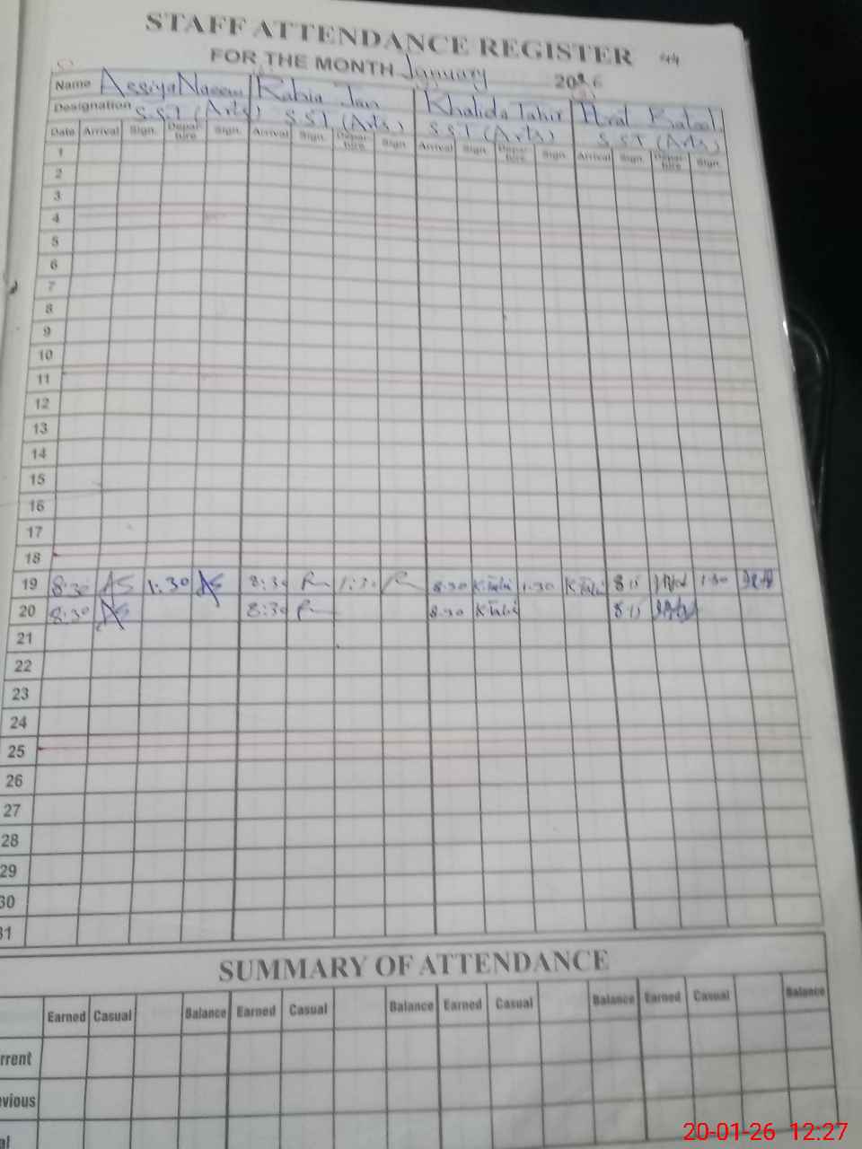 | CNIC | Full Name | Designation | R/C | Absence During Last Calender Month |