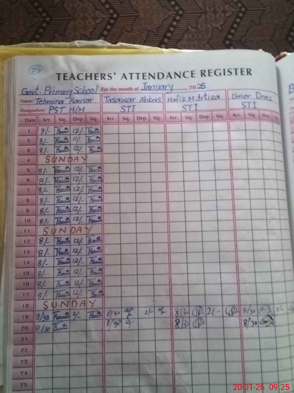 | Name: Te**** Ka**** Designation: (School Headmaster's/Headmistress's) PST Phone/Cell Number: 03**** |