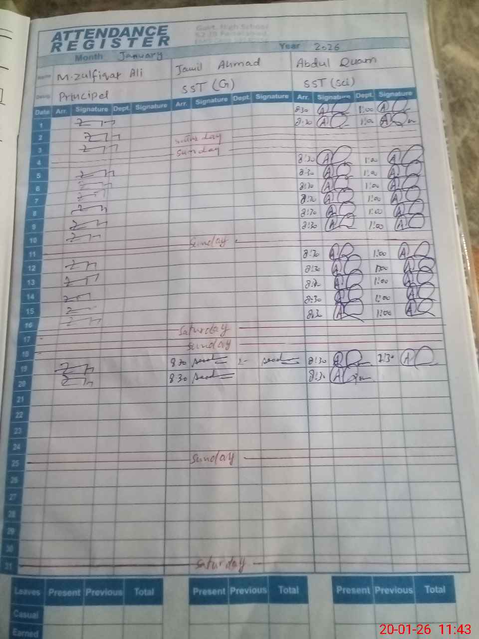 | 33**** | Mu**** Qa**** | PST Science/Maths | Regular | 0 | 0 | 0 | 0 | 0 | 0 | 0 | 0 | 0 | Absent (Un-Authorized) |
