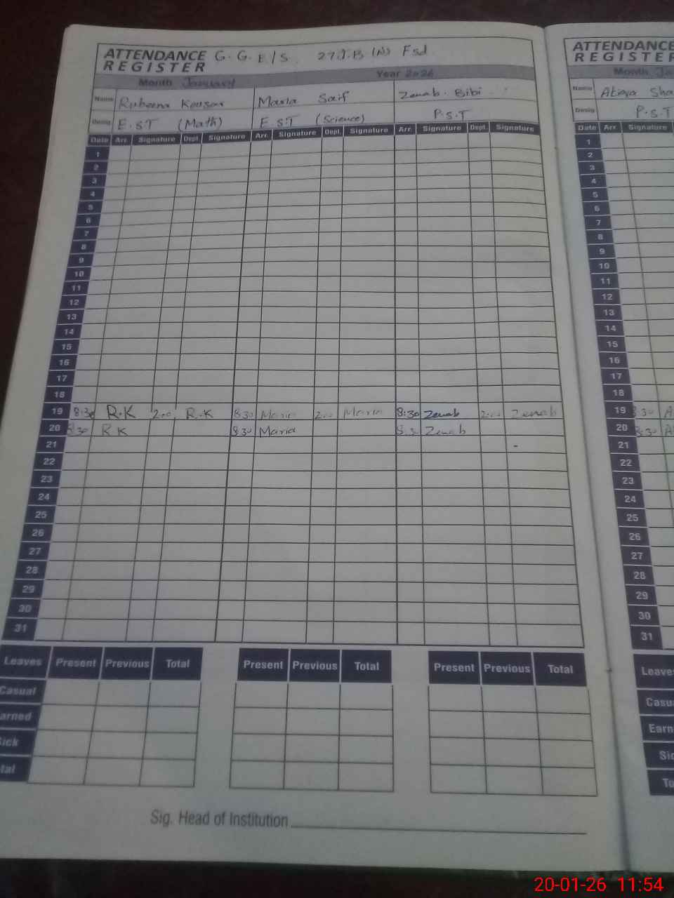 | Attendance Register | Head Teacher | MEA with School | Visit Proof |