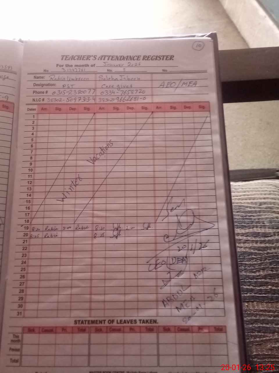 | Name: Me**** Ha**** Kh**** Designation: (School Headmaster's/Headmistress's) PST Phone/Cell Number: 03**** |