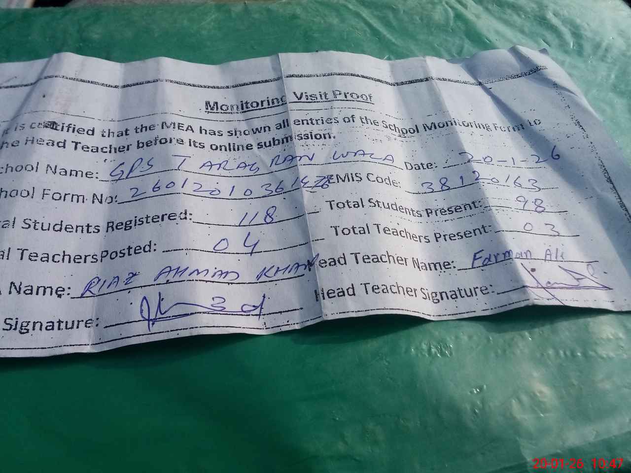 | EMIS Code: 38120163 | Name of School: GPS TARAGRAN WALA | |||