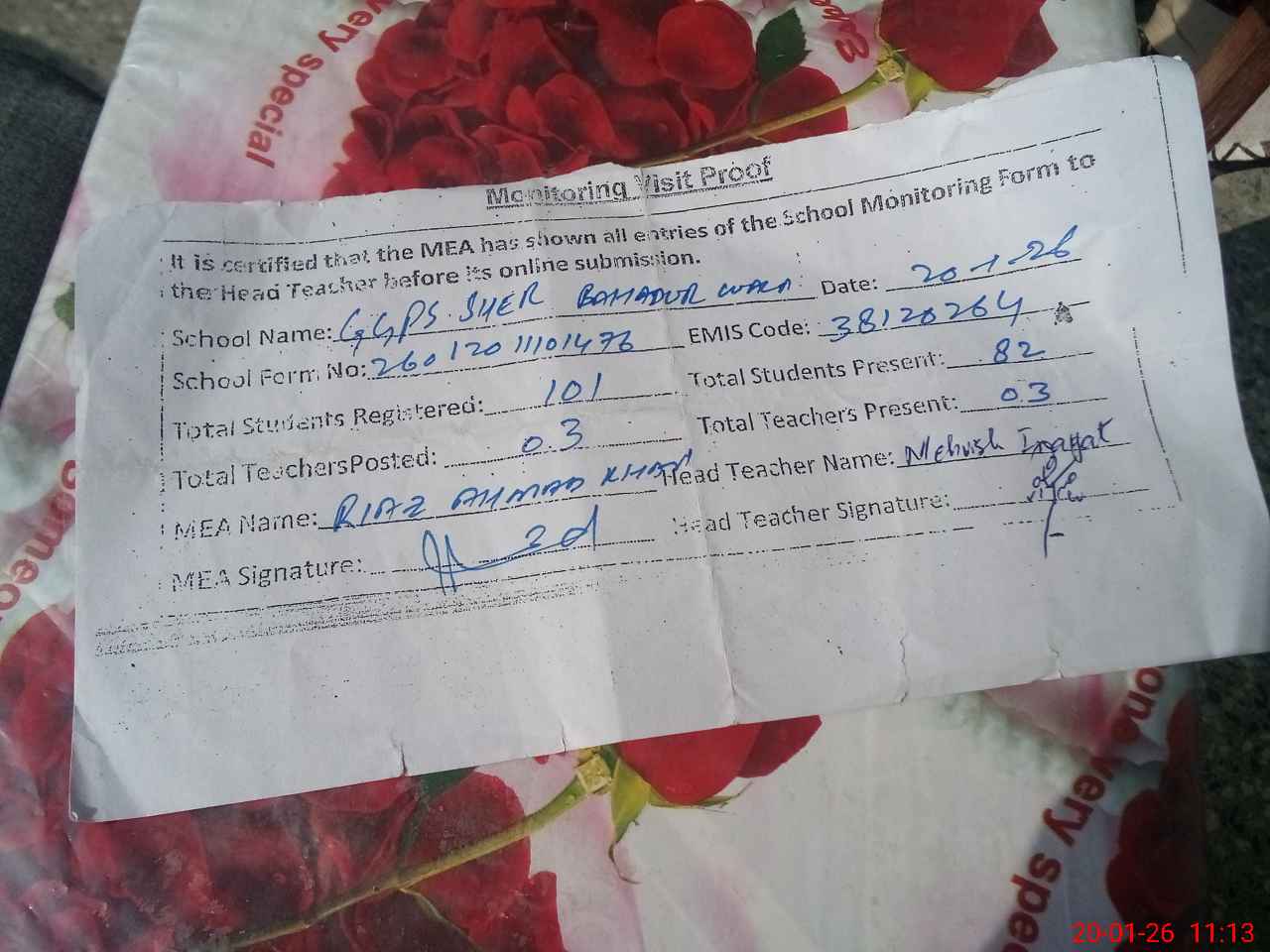 | EMIS Code: 38120264 | Name of School: GGPS SHER BAHADUR WALA | |||