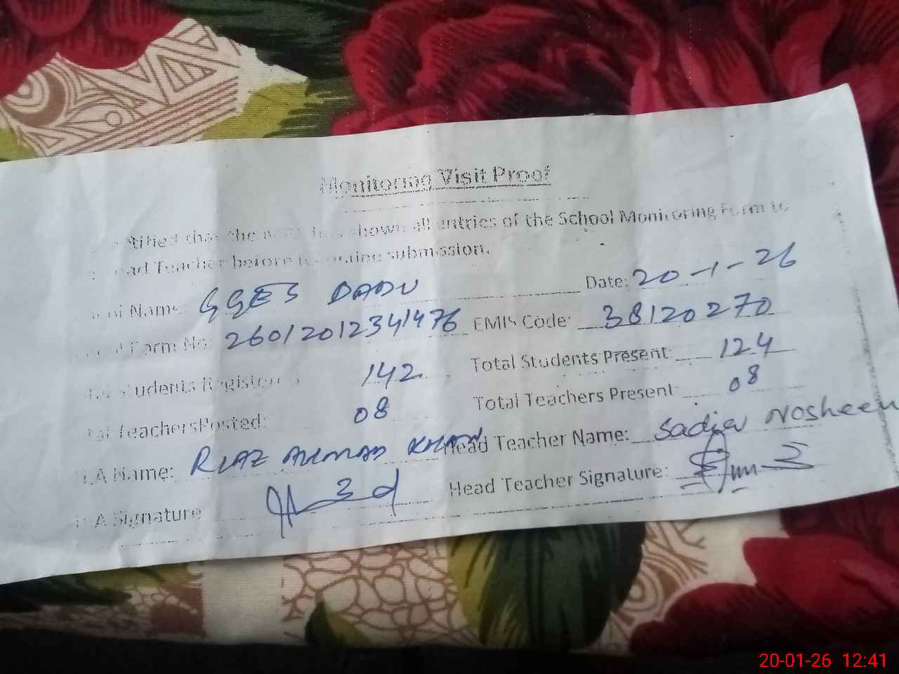 | EMIS Code: 38120270 | Name of School: GGES DADU WALA | |||
