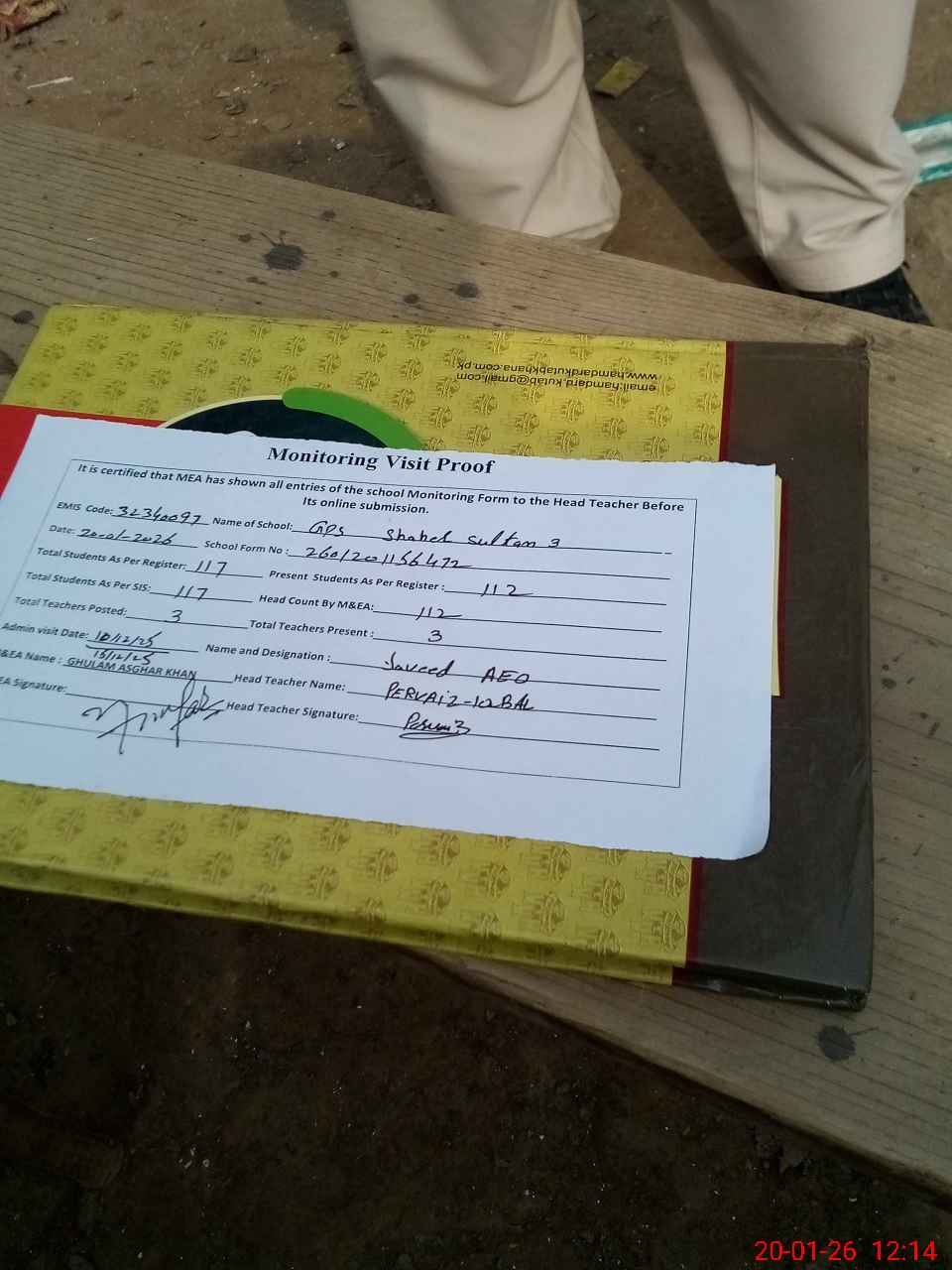 | Attendance Register | Head Teacher | MEA with School | Visit Proof |