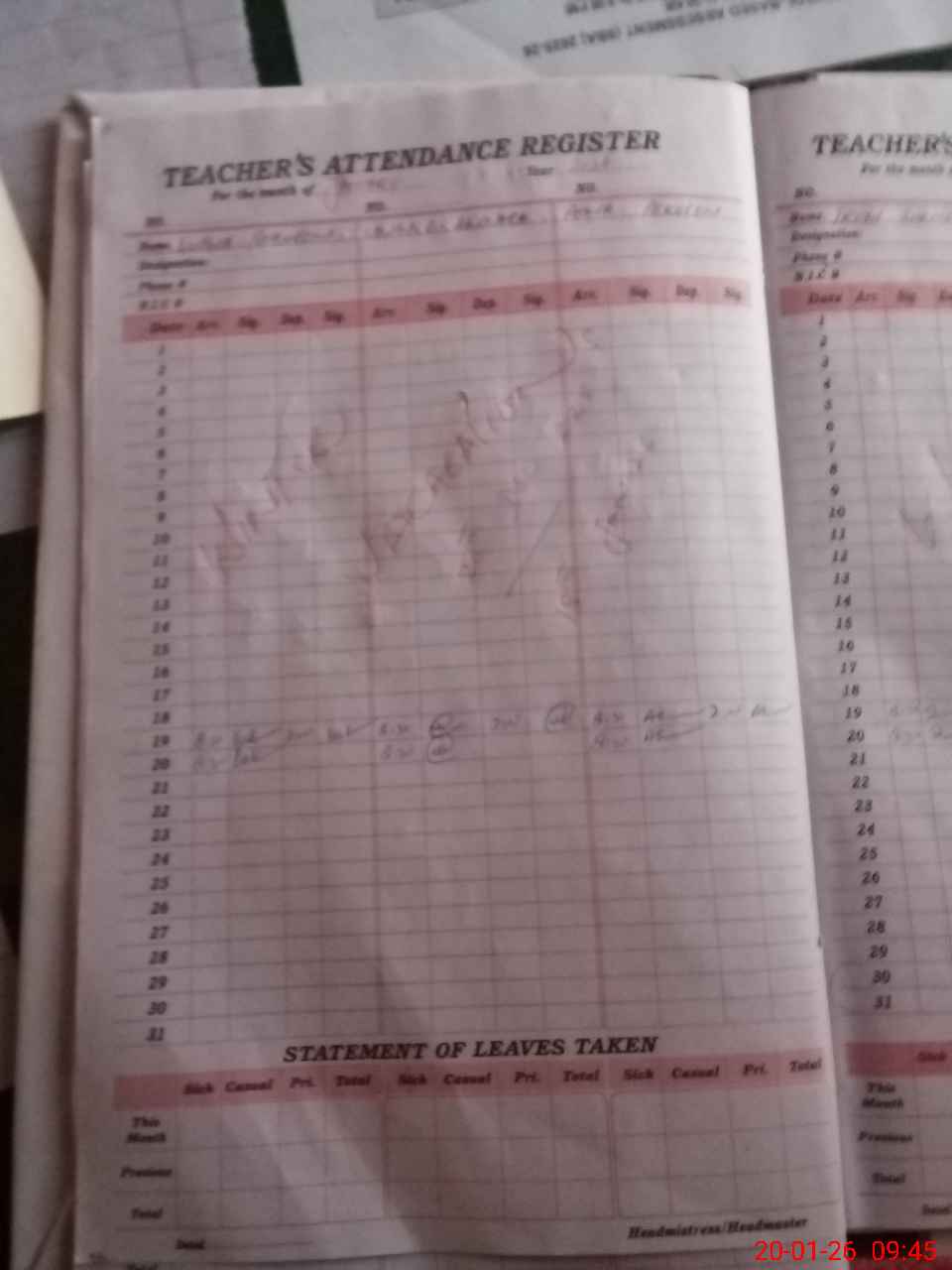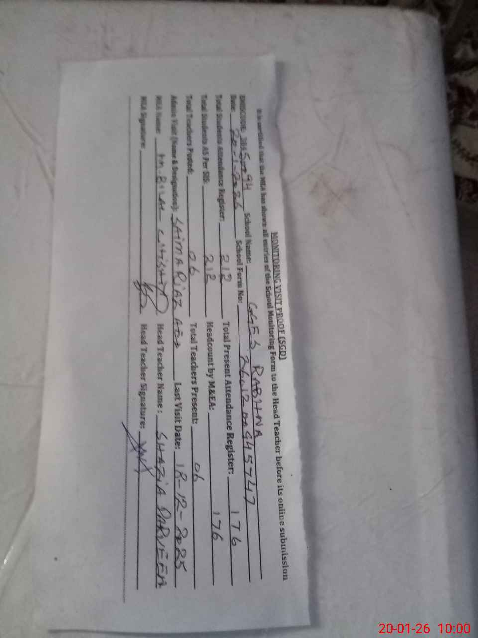 | Attendance Register | Head Teacher | MEA with School | Visit Proof |