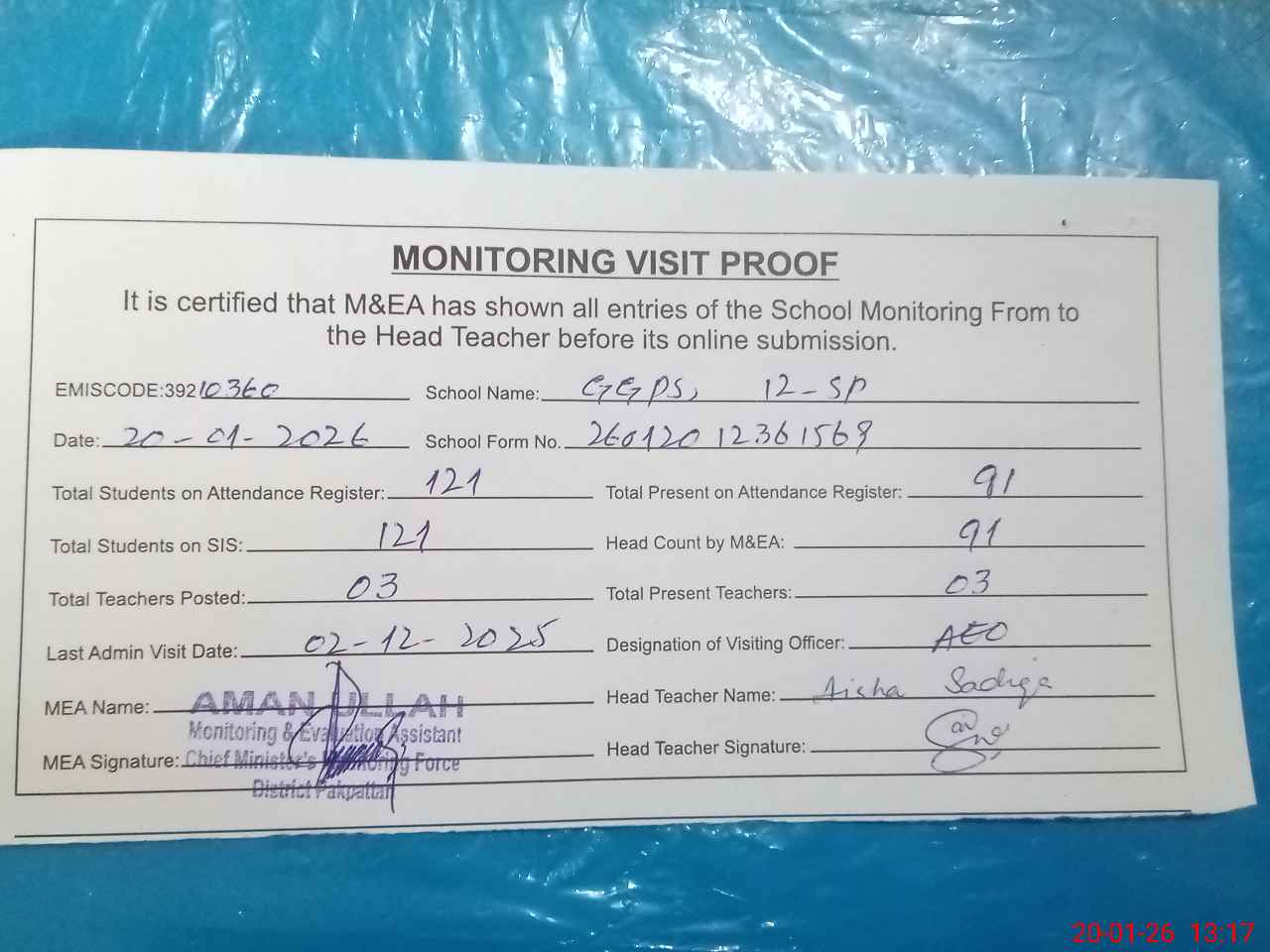 | EMIS Code: 39210360 | Name of School: GGPS 12 SP | |||