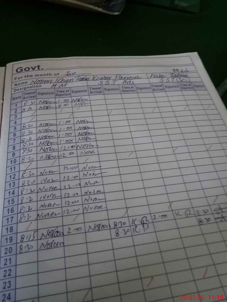 | Name: No**** Kh**** Ta**** Designation: (School Headmaster's/Headmistress's) HEADMASTER Phone/Cell Number: 03**** |