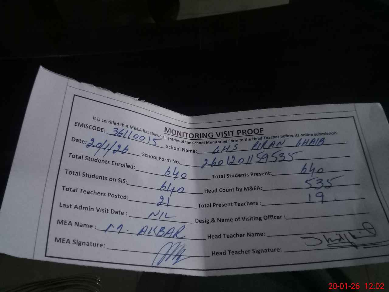 | EMIS Code: 36110015 | Name of School: GHS PIRAN GHAIB NEAR THERMAL POWER STATION | |||