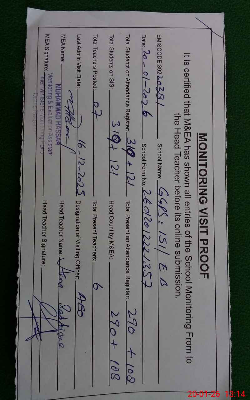 | EMIS Code: 39220381 | Name of School: GGPS 151 EB PO DILLOW WALA ARIFWALA | |||