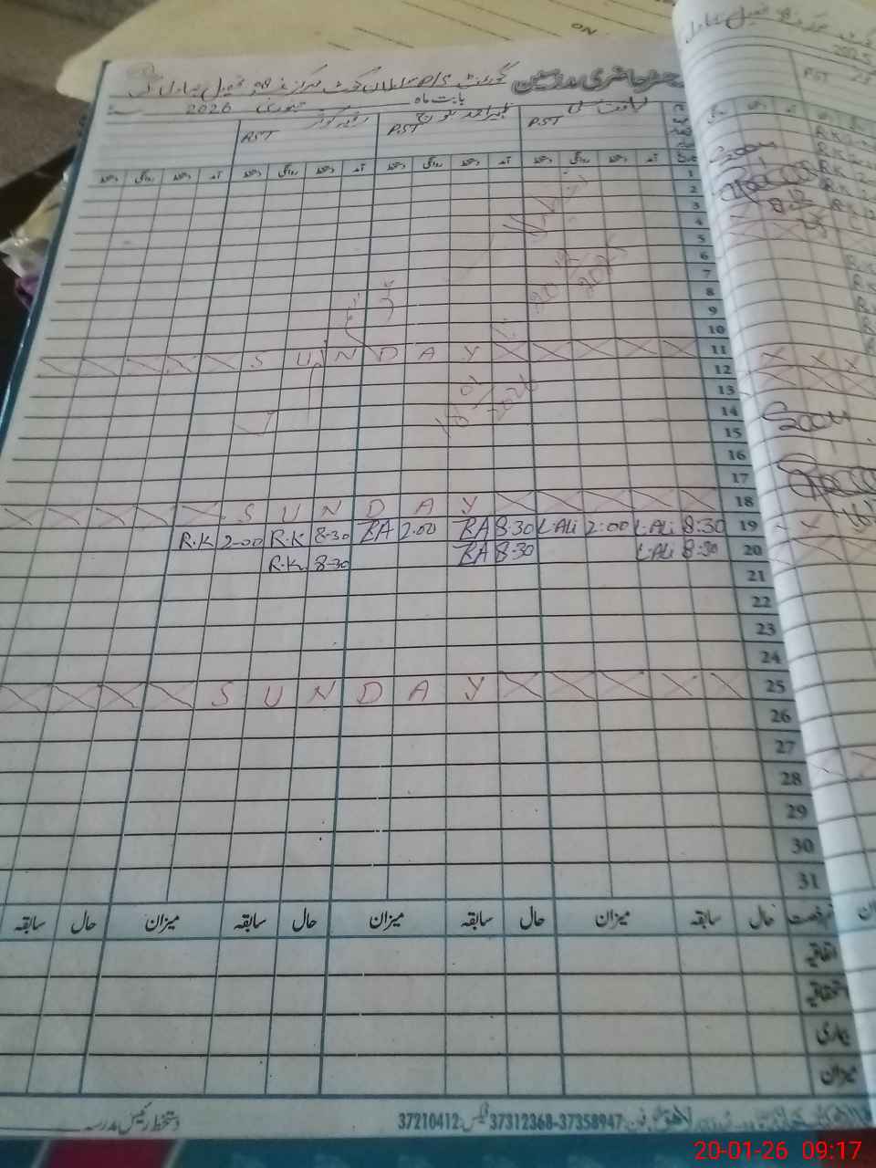 | CNIC | Full Name | Designation | R/C | Absence During Last Calender Month |