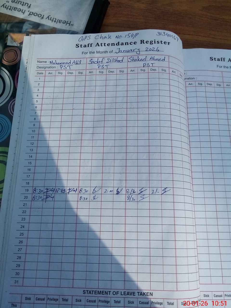 | Leave | Duty | Absent | Maternity | Medical | Ex- Pak |