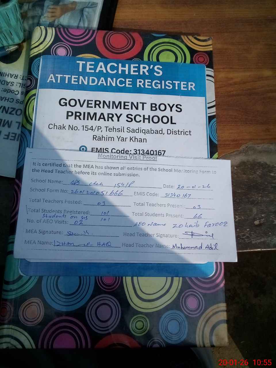 | Attendance Register | Head Teacher | MEA with School | Visit Proof |