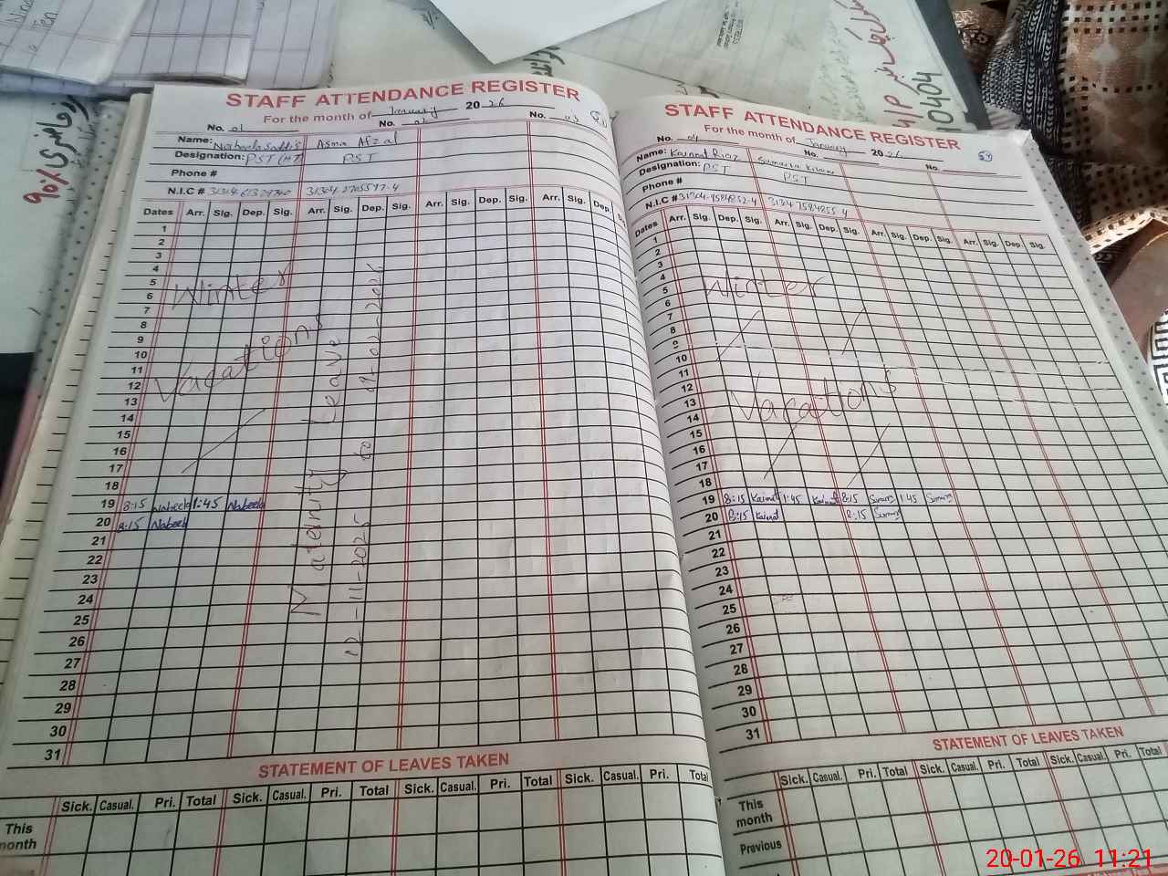 | CNIC | Full Name | Designation | R/C | Absence During Last Calender Month |