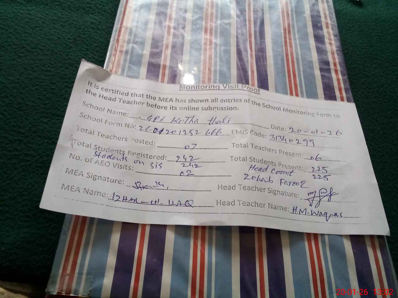 | EMIS Code: 31340299 | Name of School: GPS KOTHA THALI (PUNDAT DARI) | |||