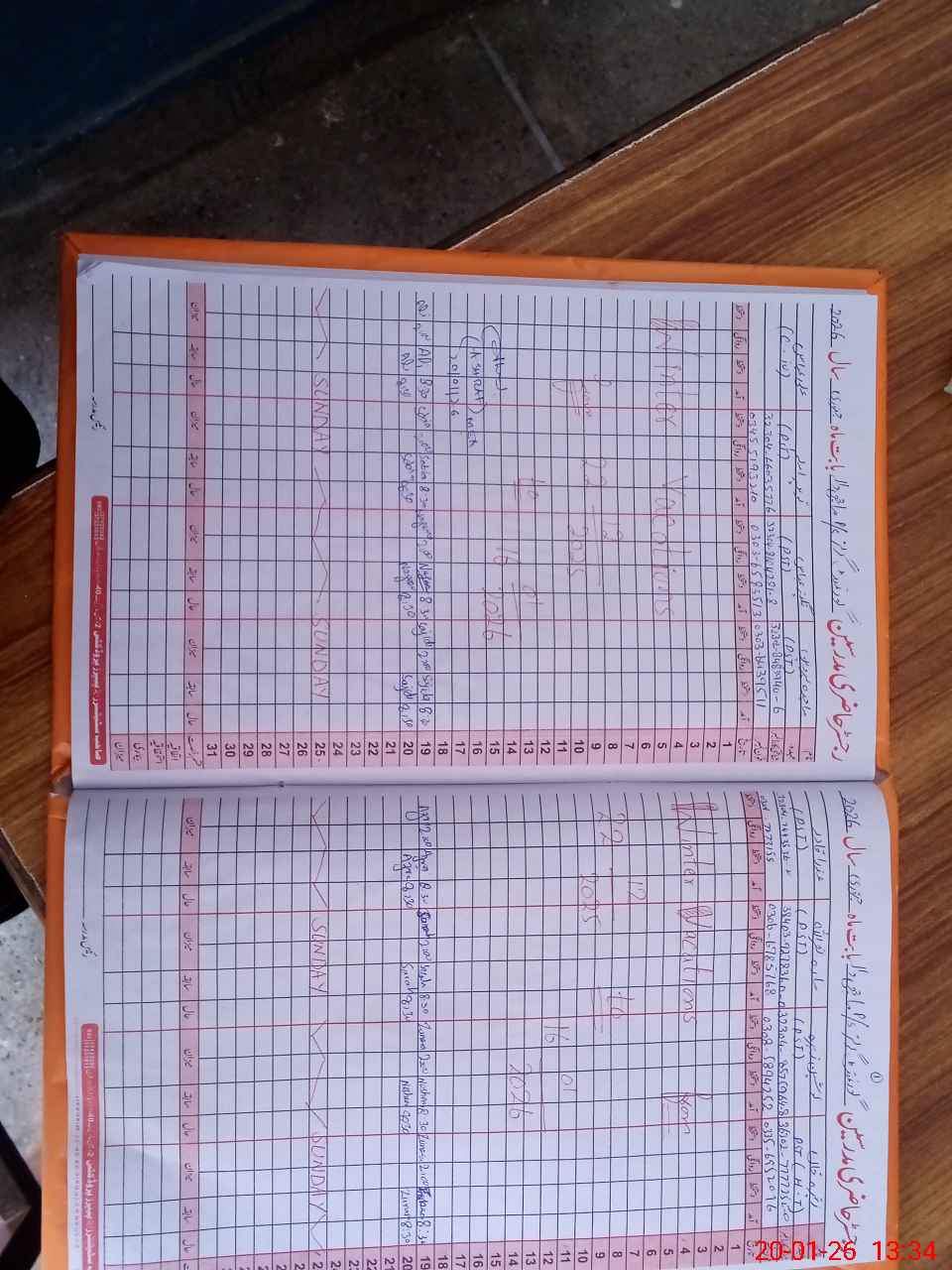 | CNIC | Full Name | Designation | R/C | Absence During Last Calender Month |