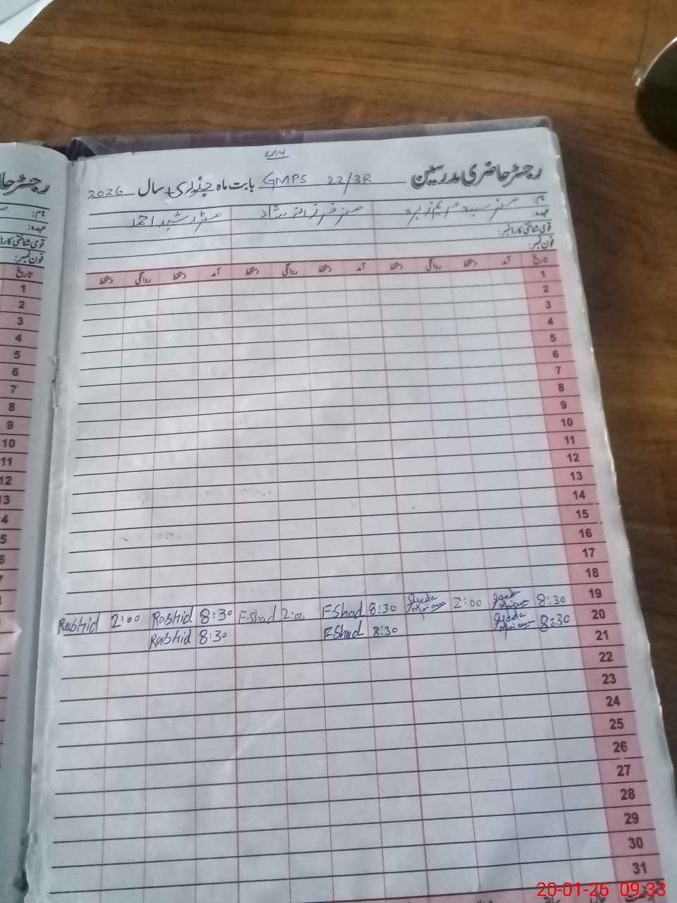 | CNIC | Full Name | Designation | R/C | Absence During Last Calender Month |