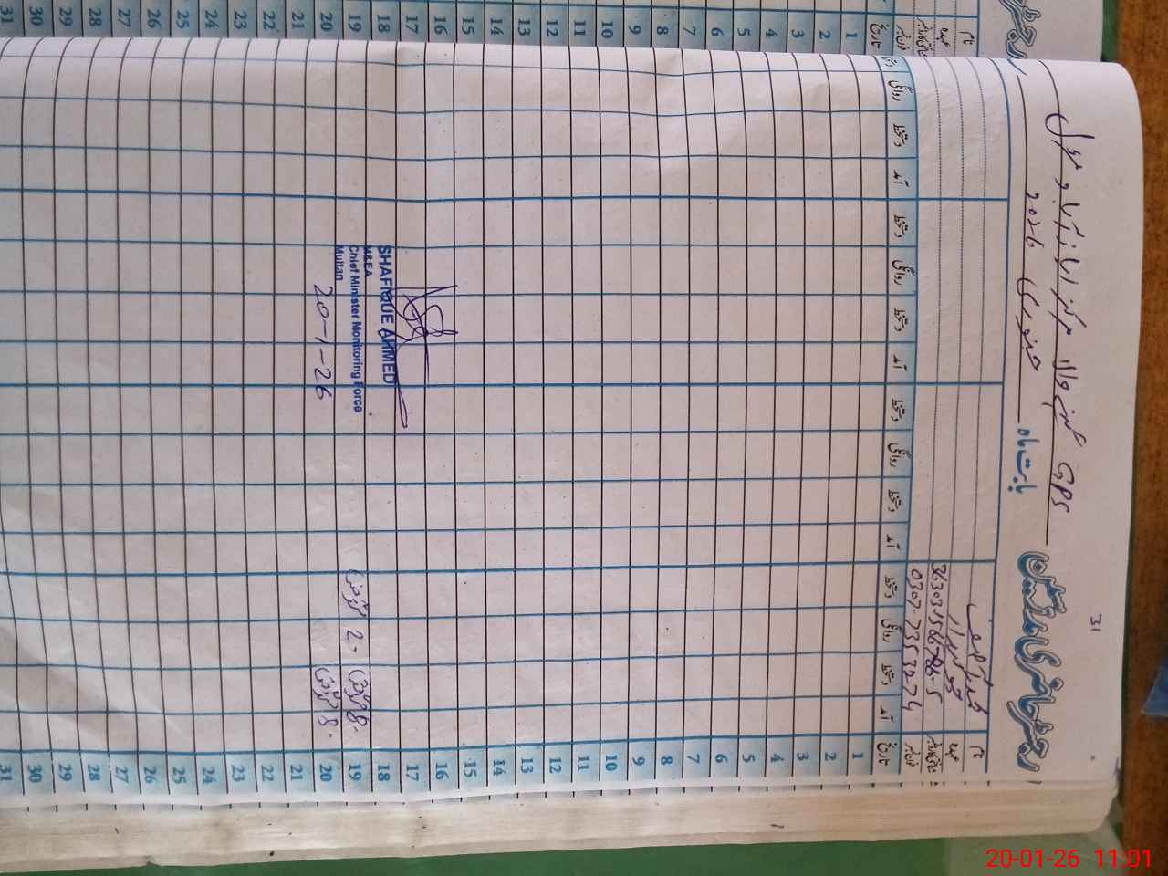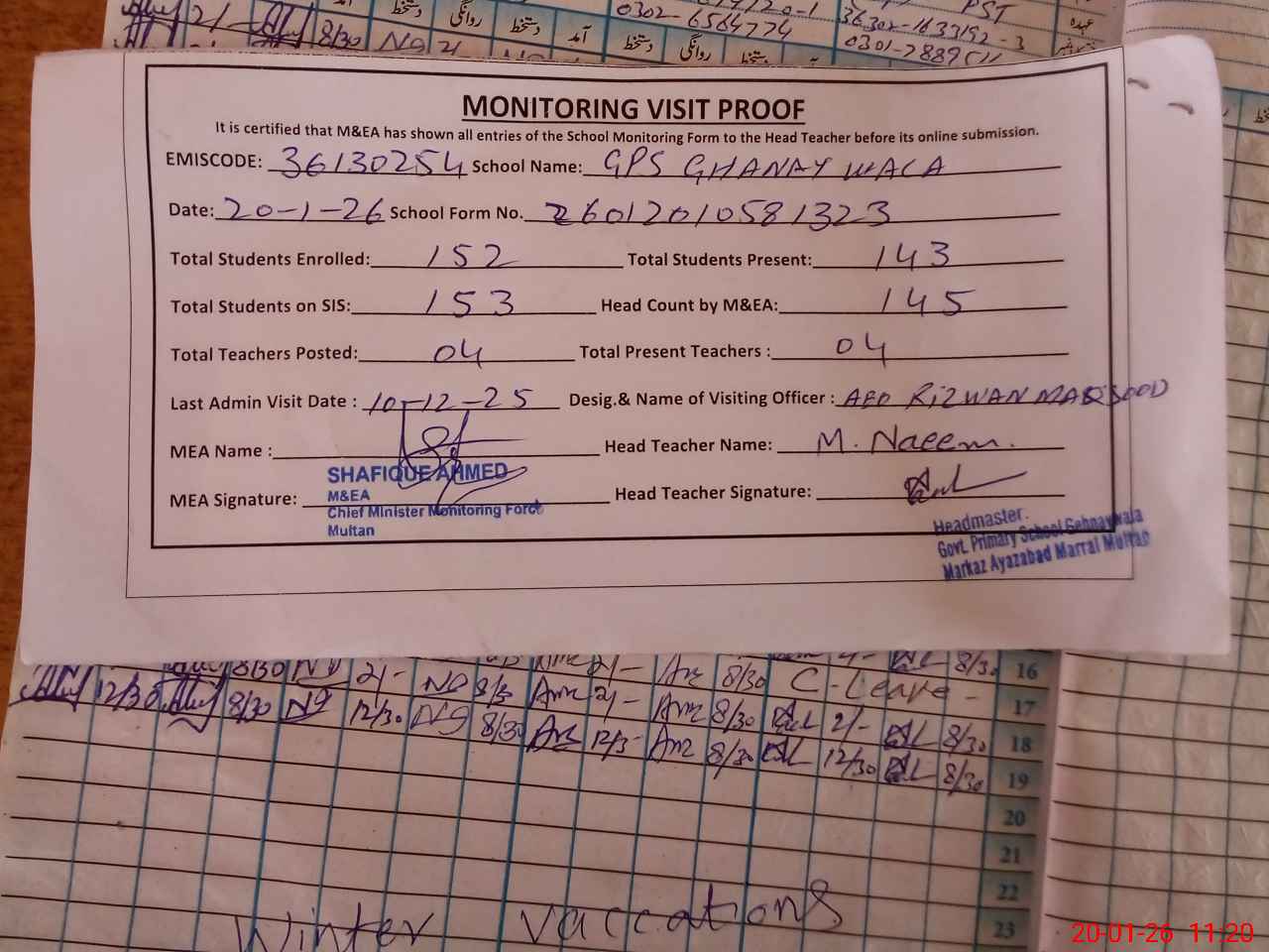 | Monitoring Date: 20-01-2026 | Start Time: 20-01-2026 10:58 AM | End Time: 20-01-2026 11:33 AM | Name of MEA: SH**** AH**** | |