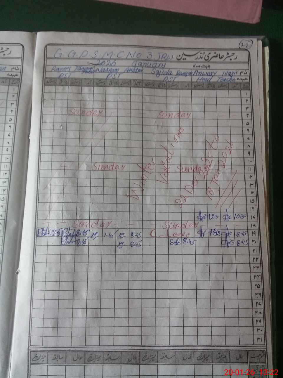 | Monitoring Date: 20-01-2026 | Start Time: 20-01-2026 12:48 PM | End Time: 20-01-2026 01:26 PM | Name of MEA: MU**** AH**** KH**** | |