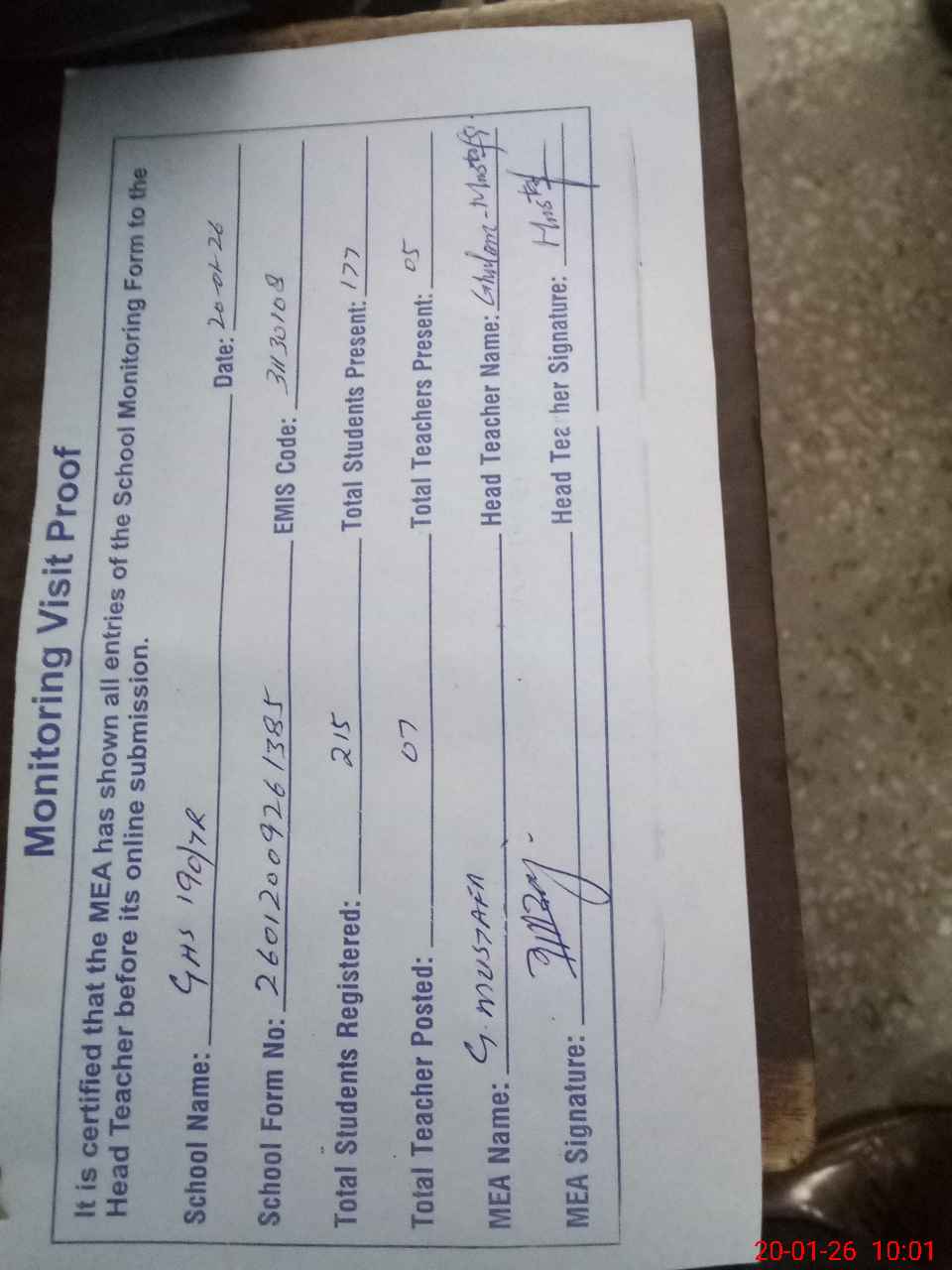 | EMIS Code: 31130108 | Name of School: GHS CHAK NO.190/7-R | |||