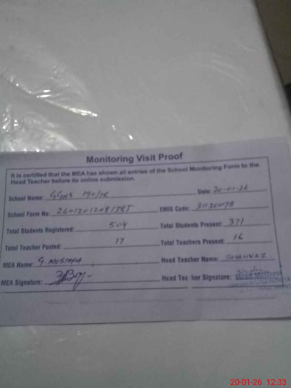| EMIS Code: 31130078 | Name of School: GGHS CHAK NO 190/7-R | |||