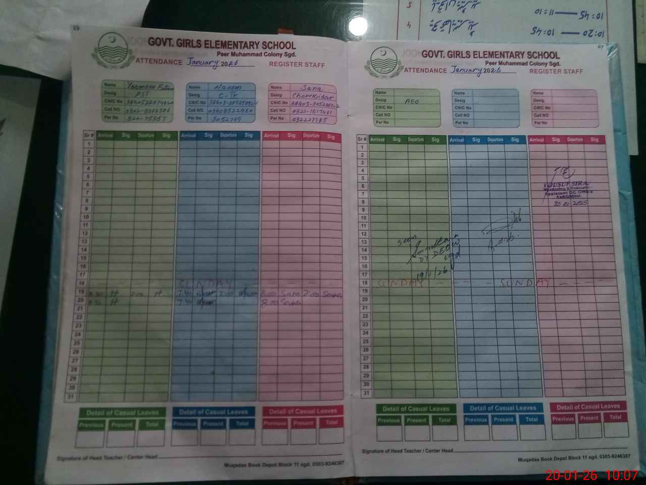 | CNIC | Full Name | Designation | R/C | Absence During Last Calender Month |