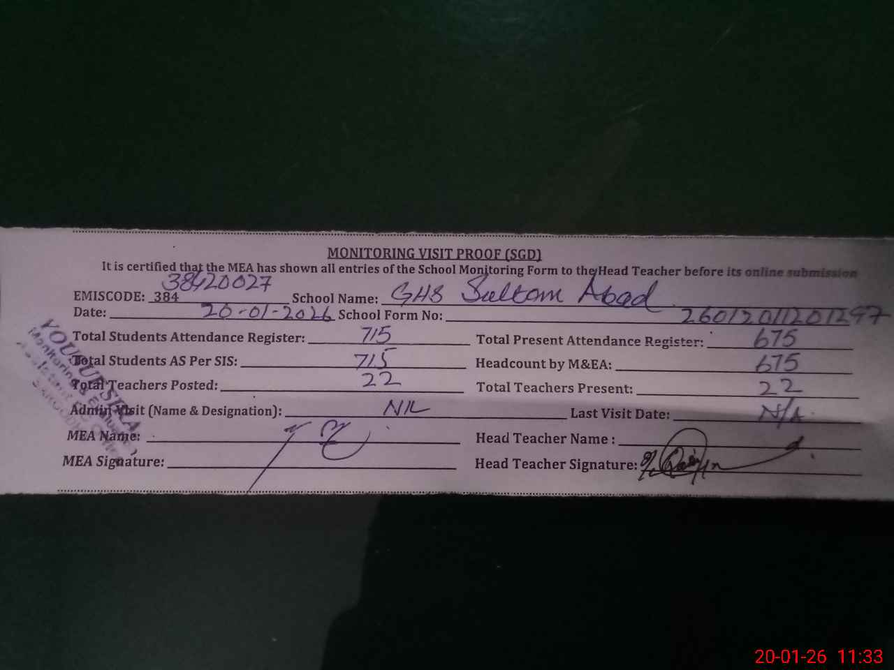 | EMIS Code: 38420027 | Name of School: GHS SULTAN ABAD SGD | |||
