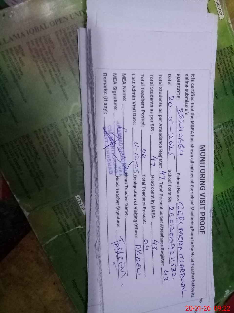 | EMIS Code: 38240664 | Name of School: GGPS MERA MARDWAL | |||