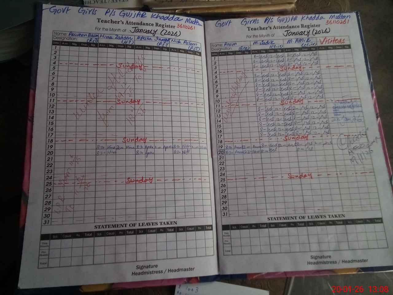 | Attendance Register | Head Teacher | MEA with School | Visit Proof |