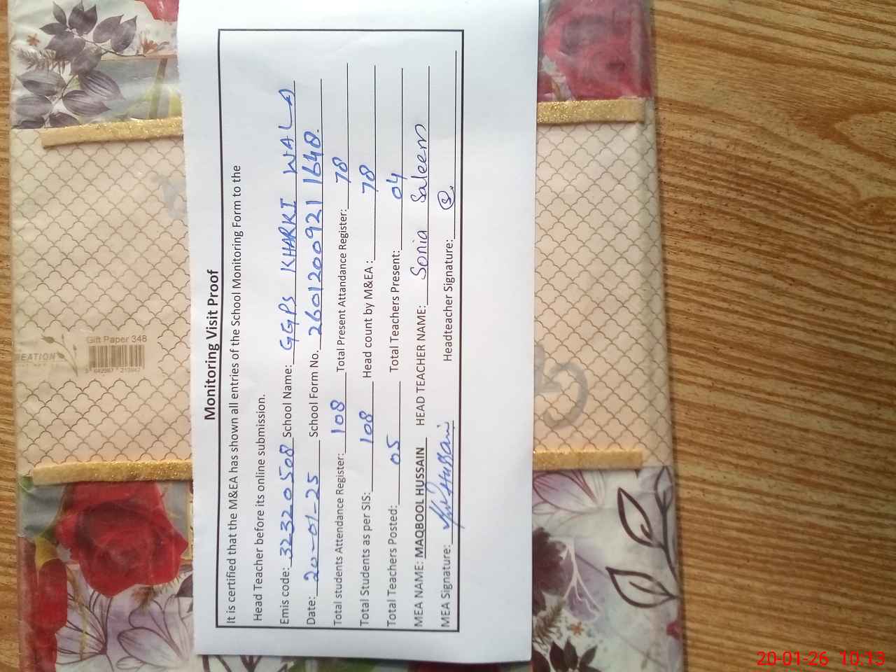 | EMIS Code: 32320508 | Name of School: GGPS KHIRKI WALA | |||