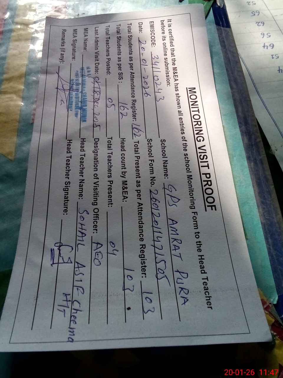 | EMIS Code: 34110243 | Name of School: GPS AMRAT PURA | |||