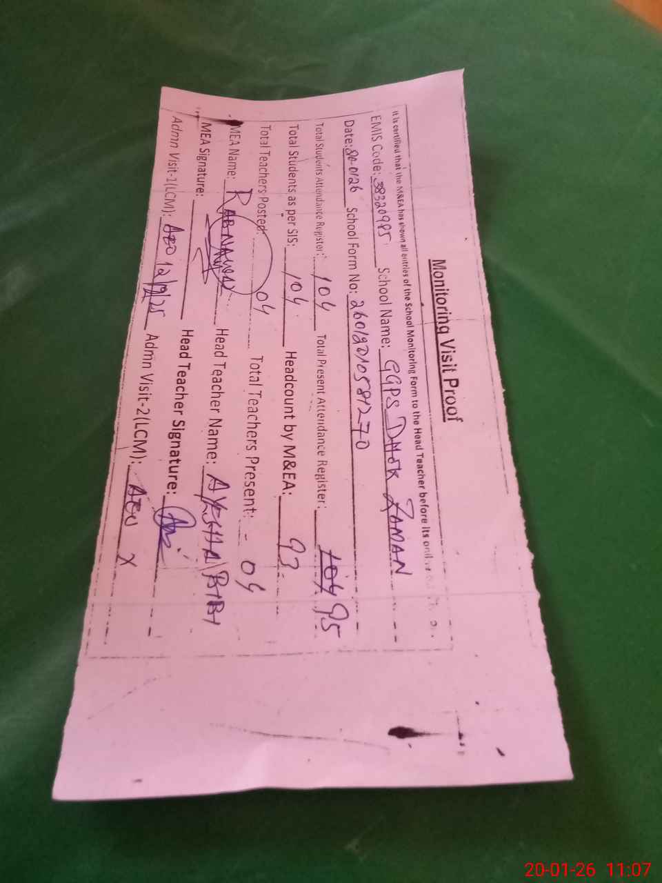 | EMIS Code: 38320985 | Name of School: GGPS DHOK ZAMAN CHAKRALA | |||