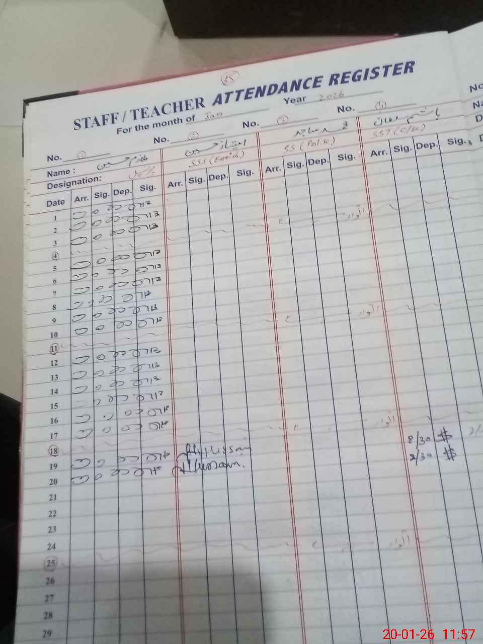 | CNIC | Full Name | Designation | R/C | Absence During Last Calender Month |