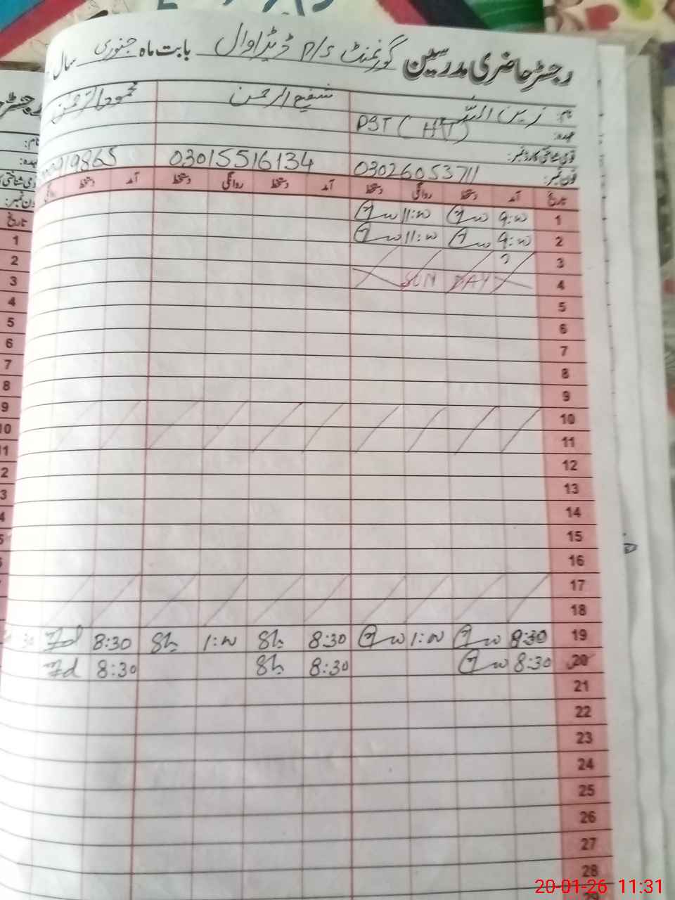 | Name: ZA**** UL**** KH**** Designation: (School Headmaster's/Headmistress's) PST Phone/Cell Number: 03**** |