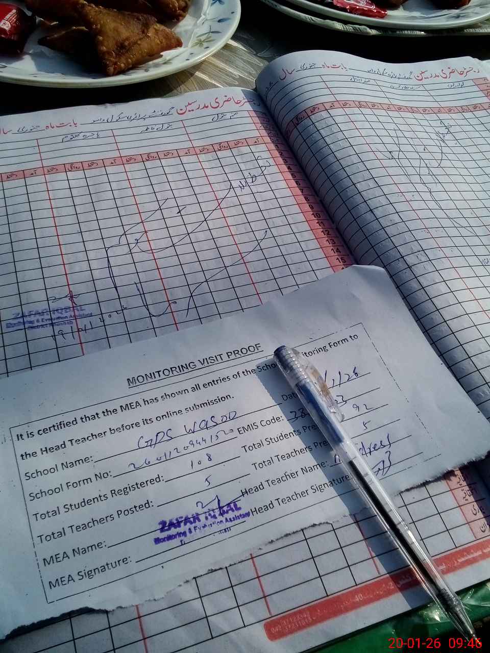 | Attendance Register | Head Teacher | MEA with School | Visit Proof |